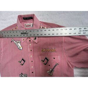 Vintage Mardel Striped Button-Up Shirt Large Musical Embroidery Handcrafted New $99
