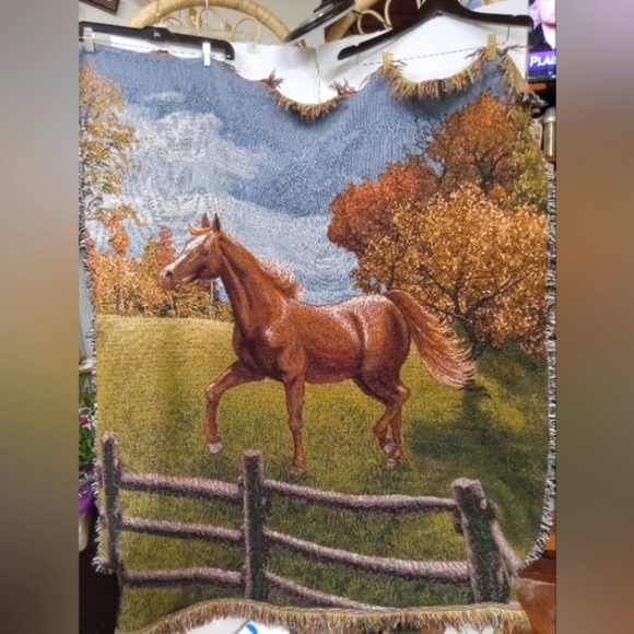 Vintage Mare Equine Horse Galloping Tapestry Throw Blanket 57"x 50 Wall Decor