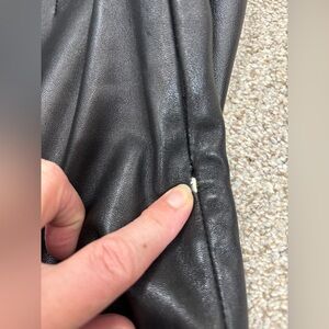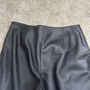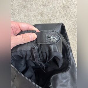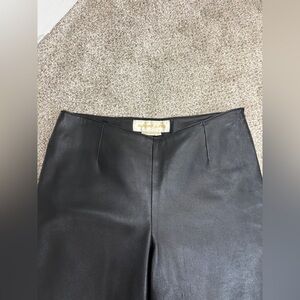 Vintage Margaret Godfrey 100% Leather Pants Mid Rise Side Zipper Classic Size 2. Very good preowned condition. Doesn’t look like they’ve ever been worn. One design flaw right under the side zipper. A little piece of white showing through. But it’s not a rip or hole.