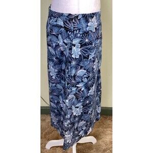 Vintage Margaret Smith Women's Size S Blue Floral Elastic Waist A-Line Skirt