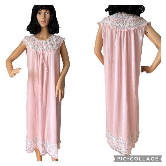 Vintage Margaret night gown sleeveless pink, white lace & ruffles size large