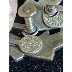 Margot Van Vorhies Carr was one of the first Women ever to create Jewelry in Mexico branding with Margo De Texco. Higher quality Silver piece with an Art Deco and Art Nouveau style. She perfected a champlevé (icing) enamel on silver technique. Vintage set from 50's with this beautiful technique. Her pieces were meticulously handcrafted and polished. Stunning necklace and Earrings set with necklace connected by silver links. Slide clasp on necklace and screw back on earrings. Highly sought after Jewelry that would add value to any collector or make a wonderful gift set.