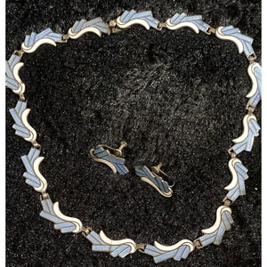 Vintage Margot De Taxco Silver Blue and White Enamel Necklace and Earring set