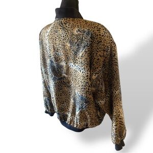 Vintage Marguerite Li 100% Silk Leopard Print Women's Bomber Jacket Size Large