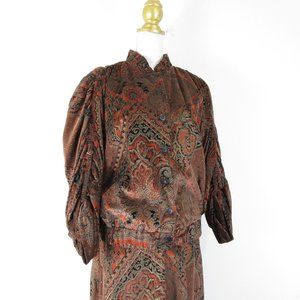 Vintage Marguerite Rubel San Francisco Velvet Jacquard Skirt Set Suit S