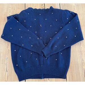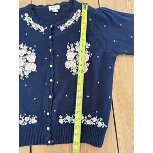 Vintage Margules Knit Sweater Cardigan FloralEmbroidered Navy Button Down L
