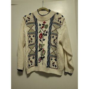 Vintage Margules Women's Floral Embroidered Knit Sweater Med