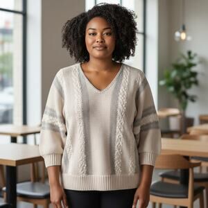 Vintage Margules plus Cream Cable Knit Oversized Sweater Size 2X