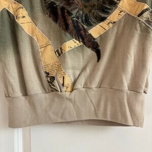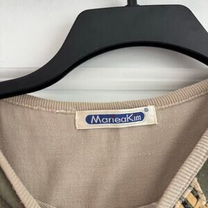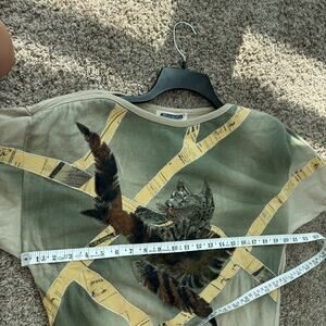 Vintage Maria Kim Women’s Cat Printed Sweater Top Sz L Artsy Tan Quirky