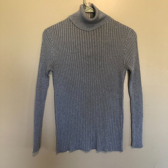 Up for sale is a Vintage Marianne Fashions Metallic Silver Zip Back Turtleneck Shirt Size Large