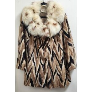 Vintage Marie Enny Real Mink Fur Coat w/ Genuine Fox Fur Collar Women’s Medium Luxury Furry Tiger Pattern