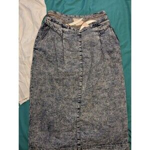Introducing a unique vintage outfit that combines a Marie St. Monet patchwork blouse in size 8 with an acid washed denim skirt in size 6. This 80s-inspired ensemble is perfect for anyone who loves vintage fashion and wants to make a statement. The blouse features a colorful patchwork design that is sure to catch the eye, while the skirt adds a touch of edgy style with its acid washed finish. Both pieces are in excellent condition and ready to be worn for any occasion.