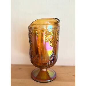 Vintage Marigold Carnival Glass Pitcher Grape Pattern Iridescent Amber MCM