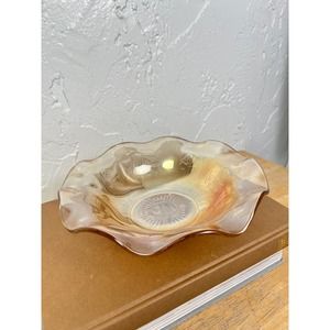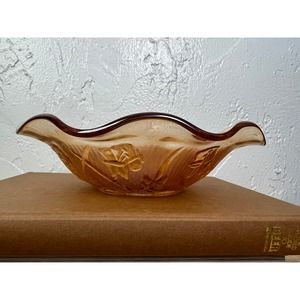 Vintage Marigold Depression Glass Iris & Herringbone Jeannette Ruffled Bowl