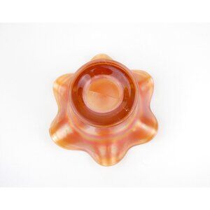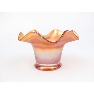 Illuminate your space with this Vintage Marigold Carnival Glass Bowl. Featuring an embossed leaf and blackberry pattern, its vibrant orange hue adds a touch of elegance.