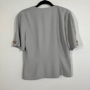 Marilyn Athens Gray Blouse Top Size 46 Gold Spiral Buttons Short Sleeve Vintage