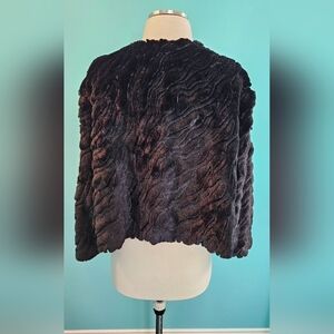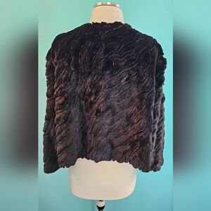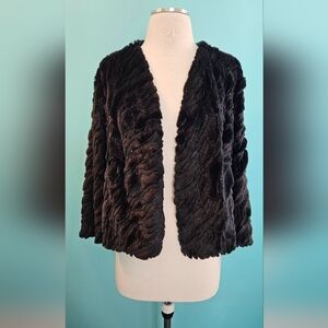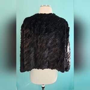 Soft faux fur jacket that drapes beautifully with sequins worked into a wave pattern. Perfect for a special night out or just toss on with jeans and boots.