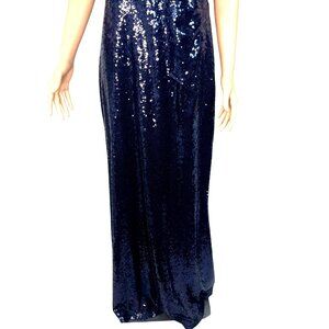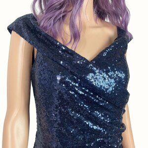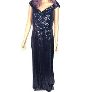 Vintage Marina Navy Blue Sequined Gown Size 12 Off The Shoulder Formal
