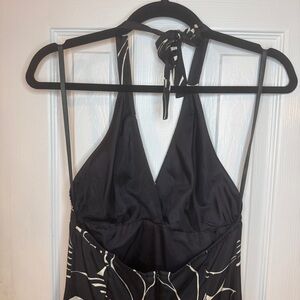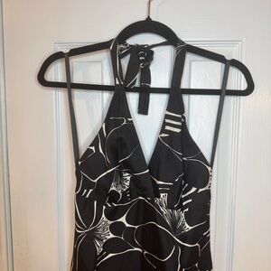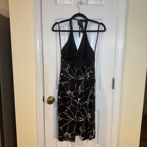 Vintage Mario Balthazar 100% Silk Halter Dress Black White Floral | Made in USA | Size 2