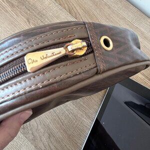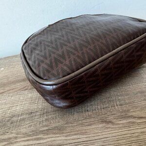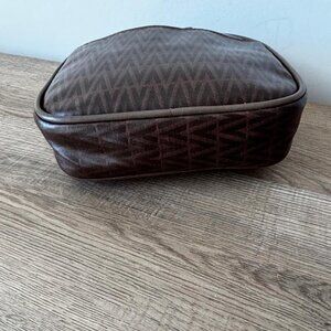 Vintage Mario Valentino Brown Monogram Zipper Pouch Clutch Cosmetic Bag EUC