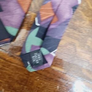 Pre-owned Vintage Mario Valentino Silk Purple Orange Green Geometric Artsy Tie
