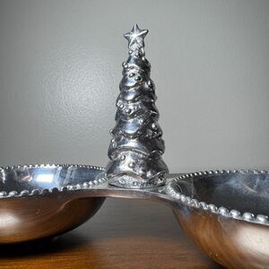 Vintage Mariposa Christmas Tree Double Bowl Serving Dish