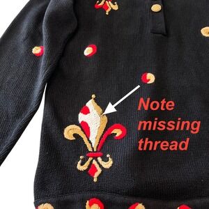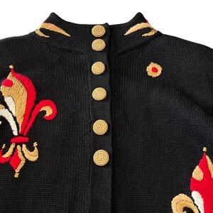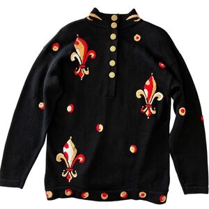 Vintage Marisa Christina Fleur-de-Lis Sweater Medium Regal Black Red Gold