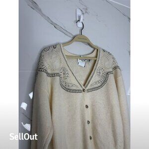Vintage Marisa Christina Ivory Embellished Beaded Cardigan Sweater sz S