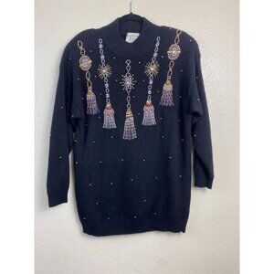 Vintage Marisa Christina Lambswool Angora Sweater Womens size XL Black Studded Holiday New year party Event