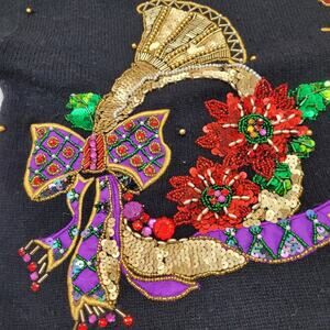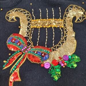 Vintage Marisa Christina ornate christmas instruments sequin sweater