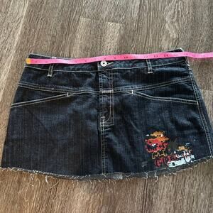 Vintage Marithé François Girbaud Denim Micro Mini Skirt Size 31 Y2K Graphic Logo