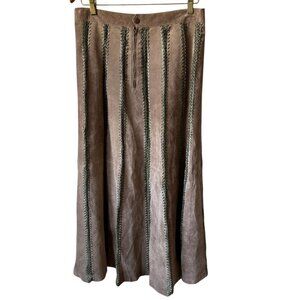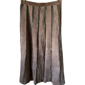 Vintage Mark Alan Suede Leather Crochet Patchwork A Line Midi Skirt Sz Med W28"