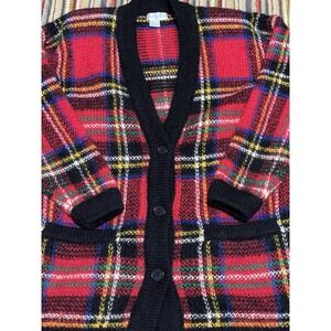 Vintage Mark Fore & Strike Red Plaid Mohair Wool Blazer Sweater Soft Emo Y2K