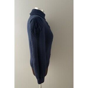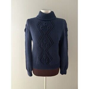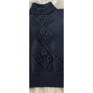 Vintage Mark Shale Sweater Size Medium Blue Wool Turtleneck Hand Knitted Tulips