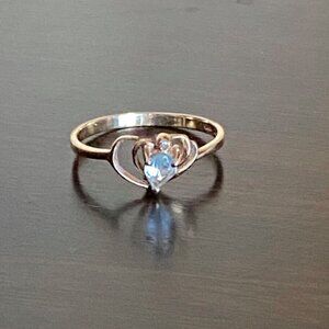 Vintage Marked 10K Yellow Gold Heart Ring w/Aquamarine & Diamond Chip Broken READ