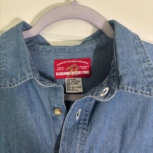 Vintage Marlboro 100% Cotton Blue Jean Button up Mens long Sleeve Shirt