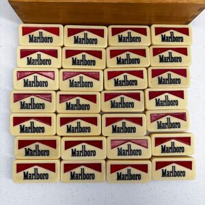 Vintage Marlboro Dominos In Wood Box Set Tobacco Tobacciana Advertising