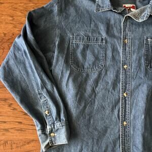 Vintage Marlboro Shirt Mens XL Blue Button Up Denim Made in USA 90s