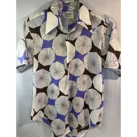 Marlboro Vintage White Brown Purple Spiral printed Short Sleeve shirt size L (16-16.5) Made in Taiwan 100 Polyester Permanent Press