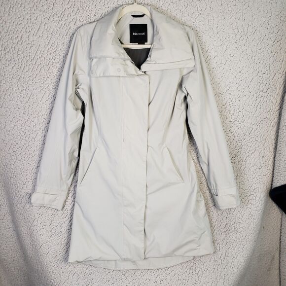 Vintage Marmot Trench Coat M White Long Rain Jacket Parka Old Money Preppy Chic