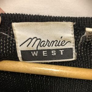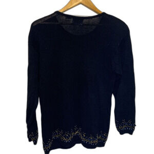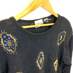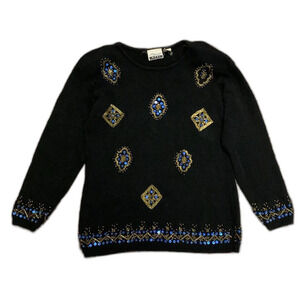 Vintage Marnie Black Cotton Blue Gold Beaded Holiday Tunic Sweater Size M