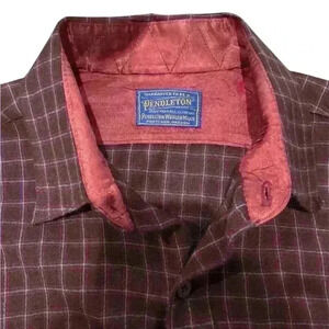 Vintage Pendleton Maroon plaid pattern holes wool dress shirt 2 or 3 small holes but other than that great condition