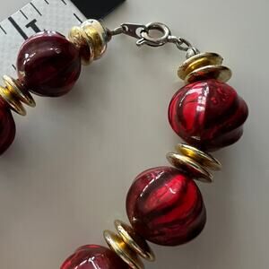 Vintage Maroon Red Cranberry Beaded Necklace with Gold Accents