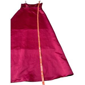 Vintage Maroon spagetti strap satin Formal Bridal long ball gown size 6. Gently used condition. Please see photos for measurements, the size tag has been removed. Back zipper closure.