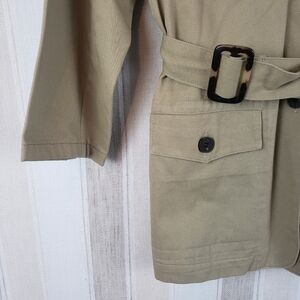 Excellent condition, belted medium weight chore jacket, button front, 100% cotton, cropped sleeves.