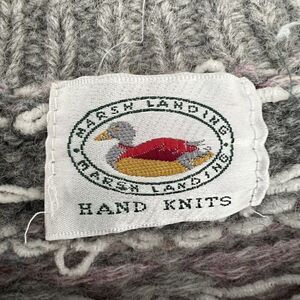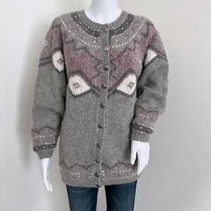 Vintage Marsh Landing Women Cardigan Size S Shetland Wool Hand Knit Gray Pink