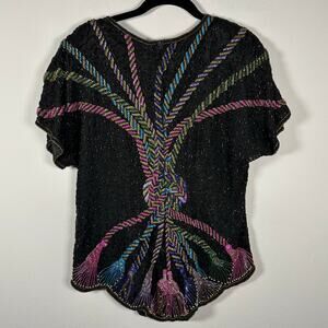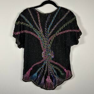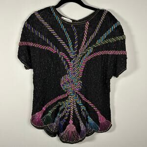 Vintage Marshall Fields Silk Beaded Blouse Women's Medium