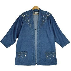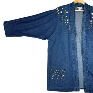 Vintage Marshall Rousso Long Denim Jacket XL Blue Studded Western Oversized