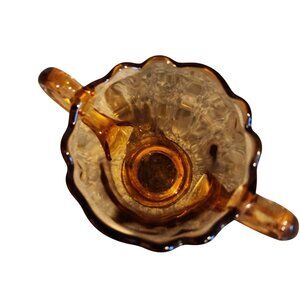 This vintage amber glass creamer and sugar set exudes a classic Depression-era charm, making it a nostalgic addition to your tabletop collection. The elegant design offers a timeless aesthetic, ideal for those who appreciate vintage glassware. Enjoy adding a touch of history to your tea or coffee routine.