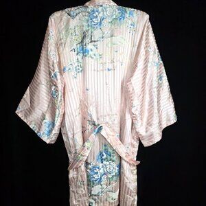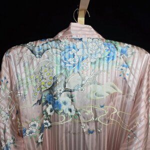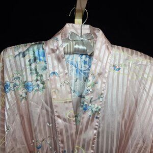 Vintage Marukyo Pink Floral Open Satin Kimono Robe 35"